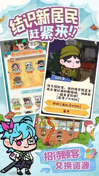 4. 游戏中有着个性员工,能雇佣性格多样的员工,结识可爱小动物,解决客人烦恼,让商业街充满烟火气。