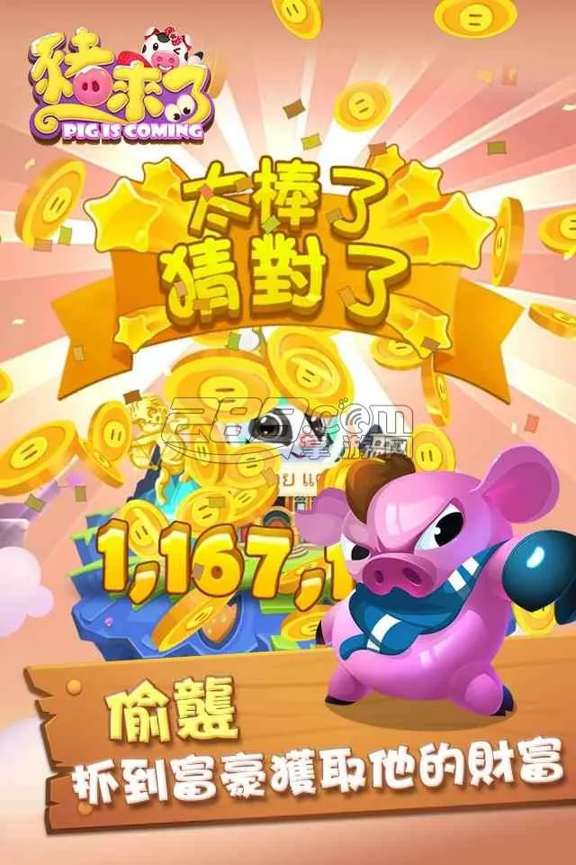 想拥有超多可爱的猪来了表情包吗?那这款《猪来了》游戏绝对能满足你!这是一款超火爆的休闲益智社交手游。它画面卡通精美,操作简单易上手。游戏里玩法超丰富,有转盘系统,能转转盘获取金币、经验值,还能攻击别人或防御自己;有建岛系统,可打造特色岛屿,完成建造成就;还有挖矿系统、排行榜系统、好友排行以及宠物系统等。在这里,你能和好友同台在线玩耍,一起体验竞技乐趣。通过帮助小猪过关、操控它吃美食来享受游戏。游戏场景丰富,画风清新可爱。新春版本更是带来更多快乐挑战。有了它,你不仅能享受游戏乐趣,还能轻松获得各种资源,解锁不同游戏乐趣,成为猪猪中的超级富豪,打造最强家园,同时收获超多可爱的猪来了表情包,让你在社交中更有趣!快来下载试试吧!
