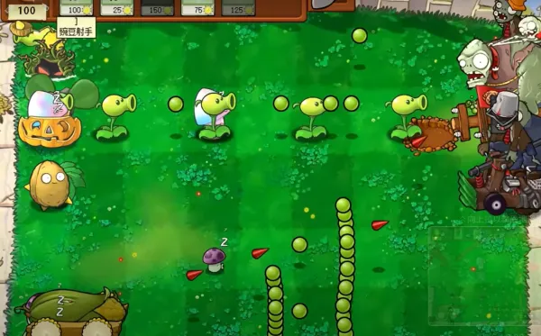 游戏里各种植物技能多样,随机樱桃炸弹可转换全场植物和僵尸,增加随机性与趣味性。小喷菇能击飞跳跃僵尸,稳定阵型。