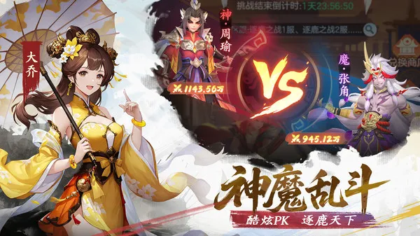 3. **沉浸历史氛围**:精心还原三国时期的地图、城池、人物及事件,带来历史沉浸感,仿佛置身真实三国。同时画面Q萌,战斗场景华丽,技能特效炫酷,还有爆笑剧情,轻松愉快。