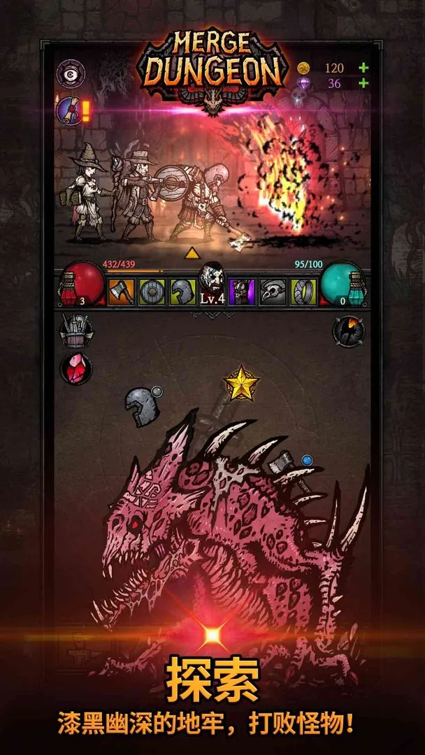如果你喜欢冒险战斗游戏,那合成地牢绝对值得一试!它以暗黑场景打造神秘地牢世界,玩法超丰富。你能从战士、猎人、魔法师三个职业中任选,升级解锁各种特殊能力和技能来提升实力。通过拖拽相同道具重叠,就能合成高级道具,新道具能力值随机决定,增加了不少惊喜。这里多数怪物强度高,生命值还会缓慢恢复,还有特殊愤怒机制,挑战性十足。你要收集掠夺有随机能力值的装备,合理运用道具战胜怪物。探索漆黑地牢时,会有紧张刺激的突发事件,为冒险增添变数。另外,合成星星还有意外惊喜哦!海量关卡等你闯关解锁,运用策略布局消灭对手,挑战终极boss。快来下载,开启属于你的冒险之旅,在这个充满挑战与惊喜的地牢世界中尽情探索吧!