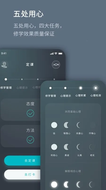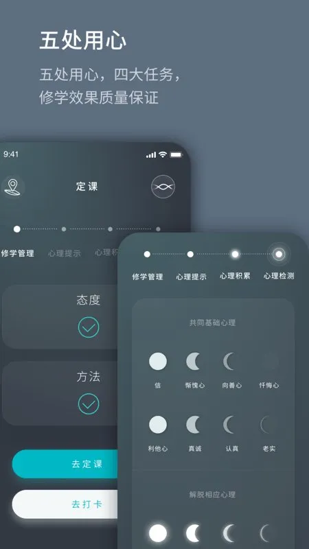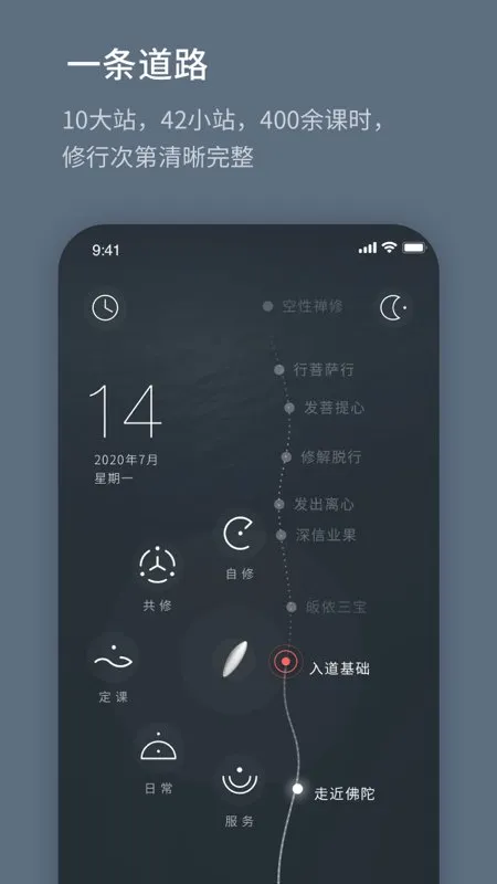 2、它将修行课程统一记录,道路简明清晰,修学心行并重,四大任务让修行效果更好,能让用户清楚了解修行状态。