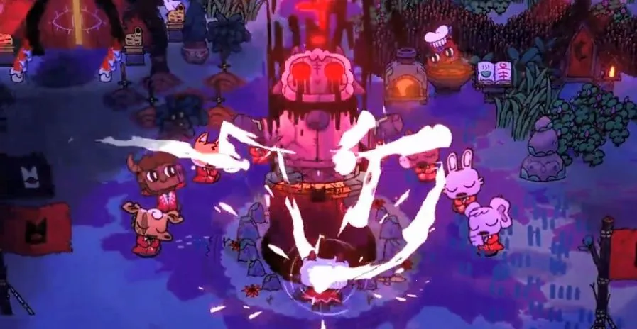《咩咩启示录》是澳大利亚工作室开发、Devolver Digital发行的暗黑可爱风动作冒险游戏。玩家扮演复活小羊建邪教,招募信徒、净化异端、挑战主教。融合RogueLike战斗与模拟经营,玩法丰富,支持本地联机。