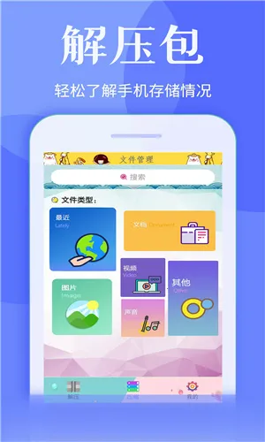 如果你经常需要解压文件,那一款好的文件解压工具必不可少。文件解压大师就能满足你的需求!它支持解压ZIP、7Z、RAR、TAR、APKG、ZIP2等几十种格式,还能解压ZIP、7Z、RAR等格式的分卷压缩包和加密文件,加密后分享传输也没问题。它有文件列表及网格展示模式,支持新建文件夹、重命名、移动、删除文件夹以及回收站等功能。能浏览文件、图片、音乐、视频、日常办公文档等几十种类型文档,还支持文件按名字、日期排序。从系统相册批量导入照片和视频很方便,能从微信、QQ、邮件等分享文件到解压大师。有了它,你能更高效地进行生活与工作,轻松管理手机文件,存储空间一目了然,一键解压方便快捷,文件随时可浏览、解压、压缩,赶快下载试试吧!