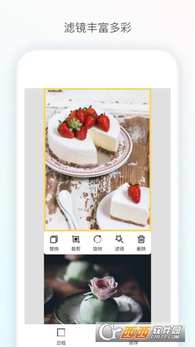 软件功能丰富,支持设置多种边框样式和厚度,能对单张照片剪裁、旋转、添加滤镜,还可拖动调整拼接顺序。