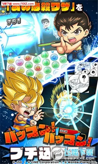 3. 消除特定颜色气泡能提升角色伤害,每位角色都有独特招牌技能,如悟空的龟派气功、幽助的灵丸等。
