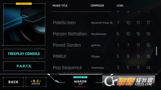 2. **操作便利多样**:启动游戏后,进入歌曲选择界面轻松开始游戏。通过特定区域能登录账户、下载游戏数据、调整歌曲难度等。左下角还可更换打歌界面的各种视觉元素,提升体验。