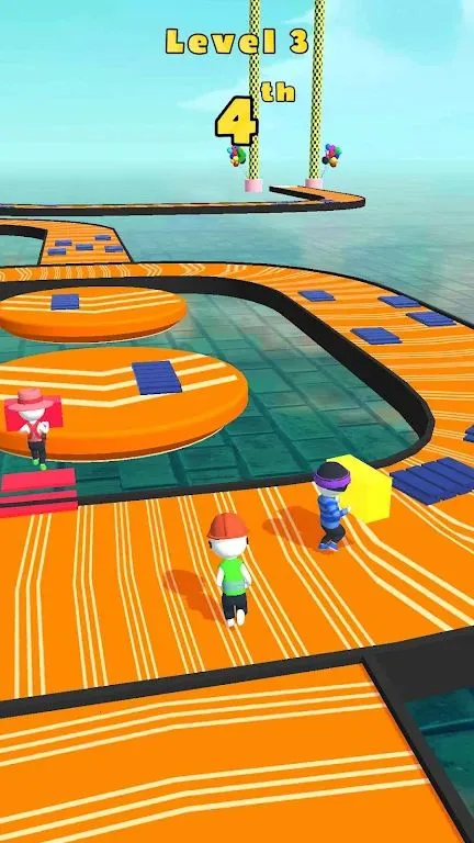 3、借助收集到的彩色方块跨越障碍、躲避陷阱,努力保持领先。