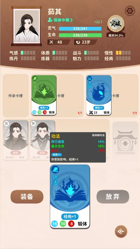 2. 其游戏特点鲜明。轻度肉鸽修仙模拟,玩法简单易上手,每次轮回都是不一样的故事。