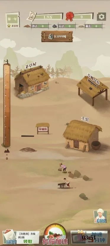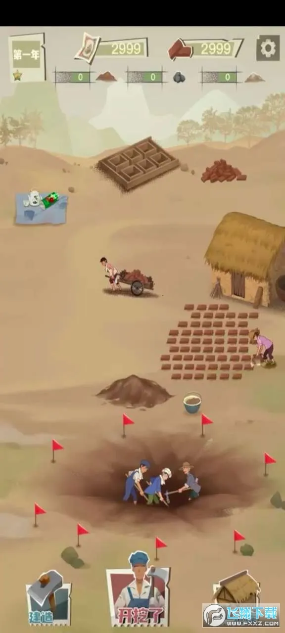 2、玩法高度自由,以放置点击为主,从挖泥建房开始,完成系列任务挑战,解锁村民、完善建造族群、打造产业一体化生产。