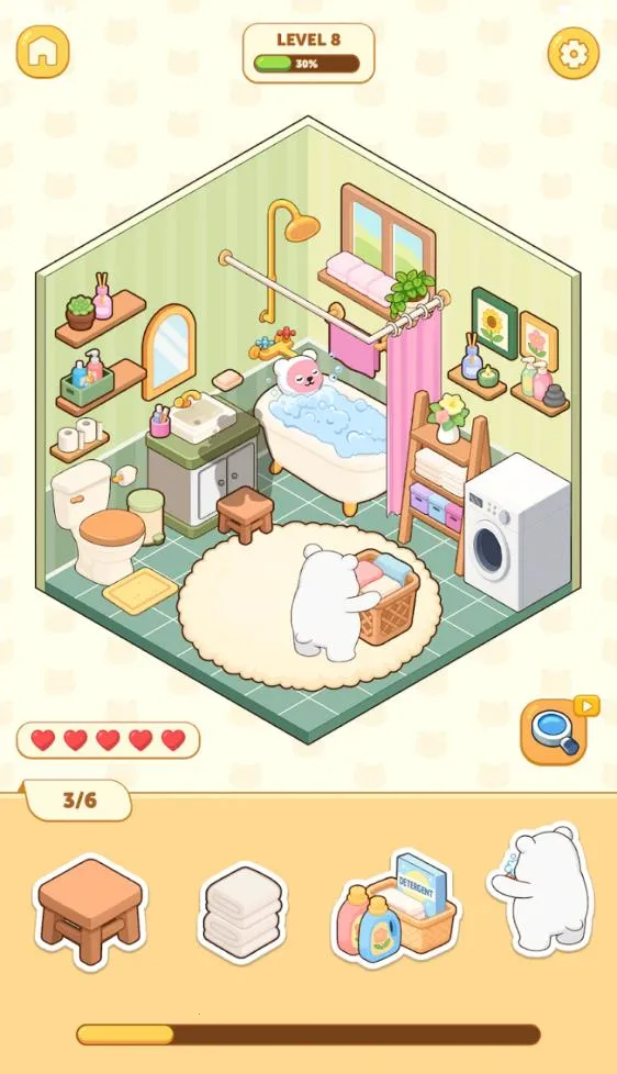 2. 初次进入有玩法指引,能快速上手。还能给布置好的房间起可爱名字,邀请好友做客。整体画风治愈,背景音乐轻松愉悦,可放松身心。