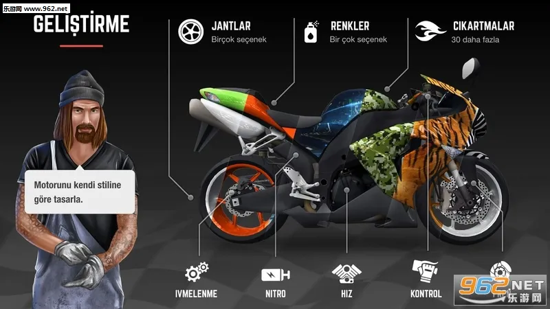 3. 个性化改装:可解锁数十款帅气摩托车,还能按自己风格进行个性化改装,包括更换颜色、搭配喷漆、升级零件等。