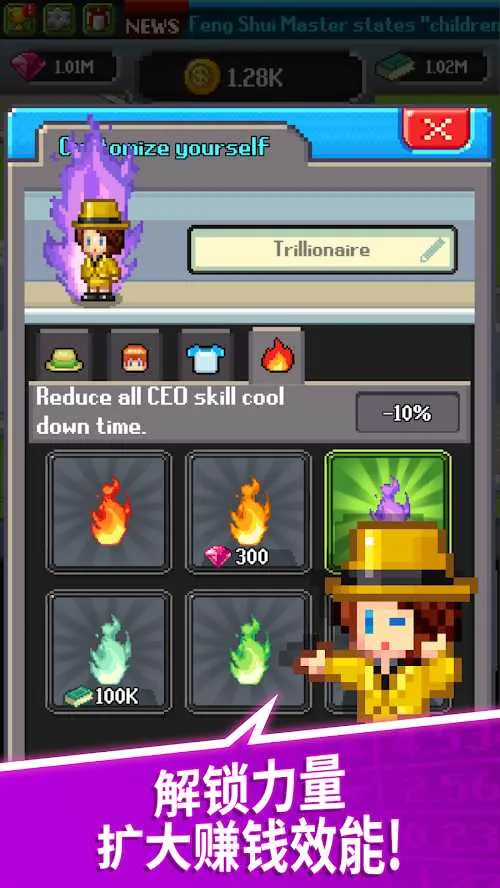 点点亿万富翁中文内购破解版是一款像素风商业模拟放置手游。玩家出任理财公司ceo,通过点击、雇佣员工、股票投资等赚钱,还能装饰公司。破解版可内购,轻松体验亿万富翁人生。