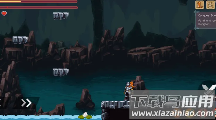 游戏玩法丰富多样,进入主界面点击新冒险按钮就能开启探索。有多种模式可选,操作简单易上手,左侧操控角色移动,右侧有攻击、跳跃、冲刺与潜行等按键。右上角任务栏能查看目标,完成有奖励。在地牢击败怪物可获经验升级,强化角色属性。通关后还能开启宝箱得珍稀奖励。