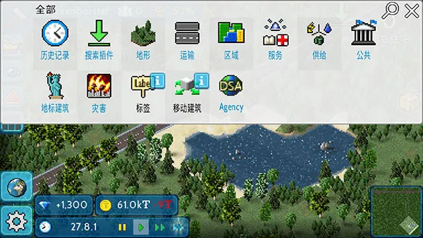 2. 可自由进行建造,从无到有完整构建一座城市,包括建造房屋、铺设水电、管理交通等。