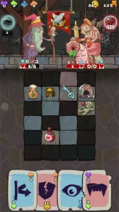 游戏玩法丰富,搜集魔法符文与金币激活卡牌效果,点击拾取蓝色符文解锁透视卡看清房间布局。拖动卡牌可出售换资源,但回收桶会造成1点伤害。获得绿色符文就能用治疗卡牌保命。面对精英敌人,别强攻,去找支援道具或符文。每个英雄都有独特技能,比如盗贼能多获金币,猎人可规避陷阱,圣骑能显示门位置,战士击败小怪有概率额外掉落金牙,炼金巫师使用回收桶免疫伤害。快来地牢速攻,开启精彩冒险吧!