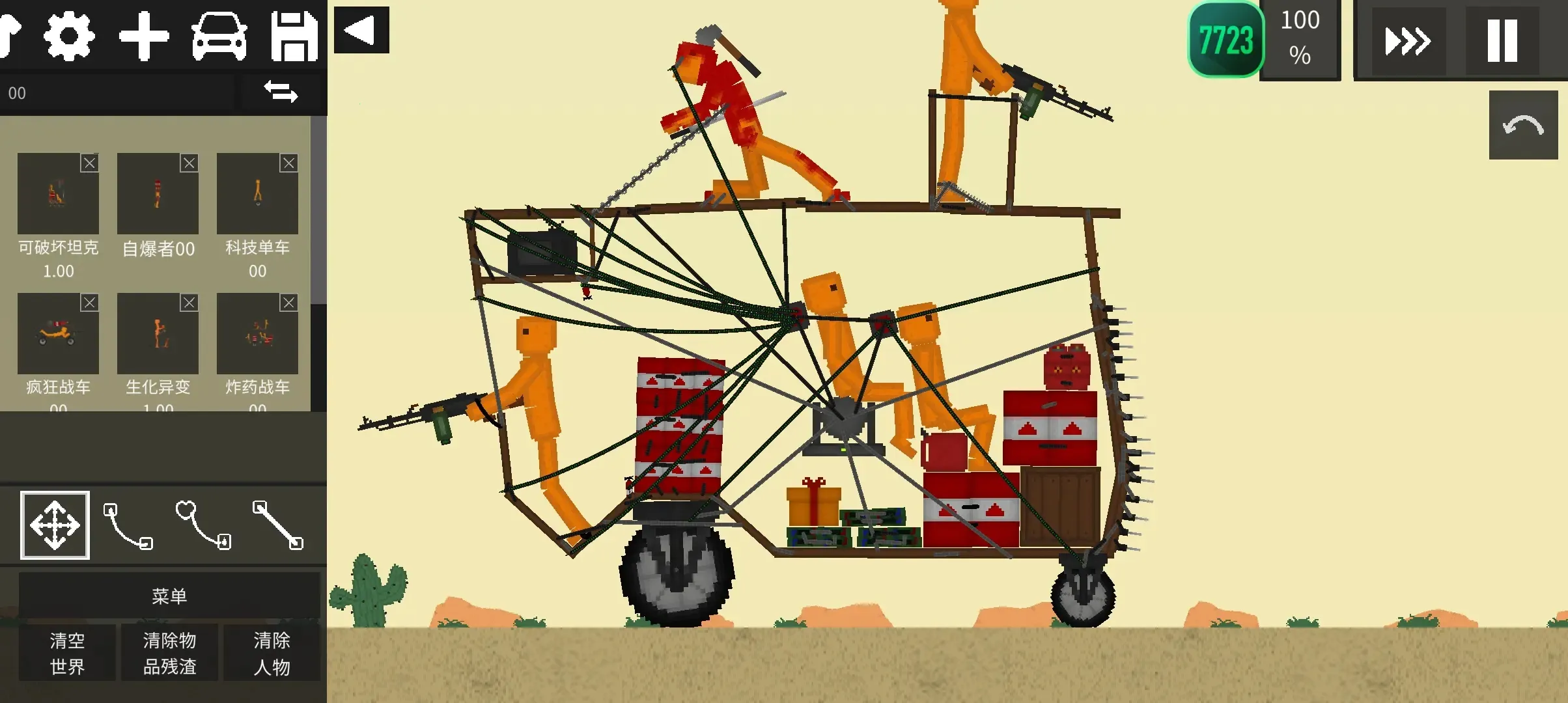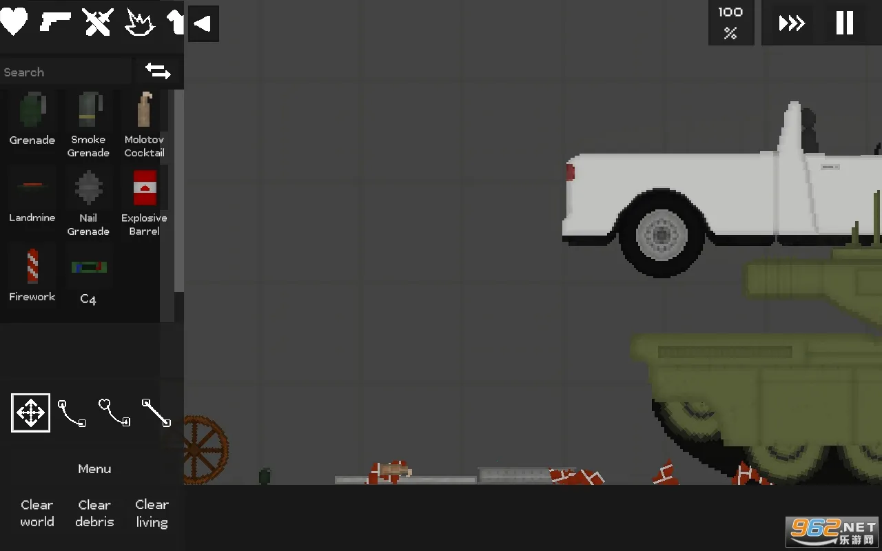 2. 武器种类繁多,从冷兵器到现代热武器,再到喷火器、炸药等,带来丰富战斗体验。并且可以制造装置玩耍,自由度极高。