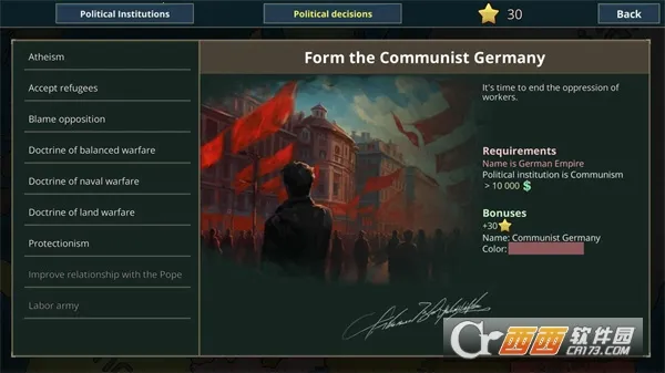 4. 科技树与政治制度相互影响,玩家能据此做出关键抉择,塑造独特国家发展路线。