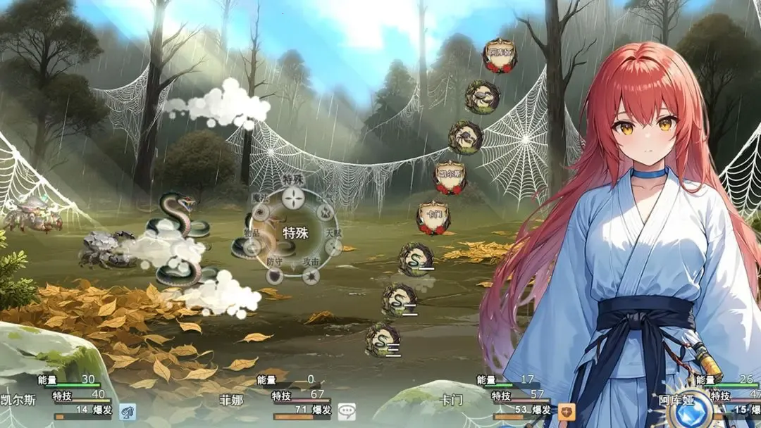 3、战斗系统独特,回合制实时操作结合,要策略性配置技能阵容应对宏大团战。敌人与UI界面全新绘制,二次元立绘精美,画面风格独特。
