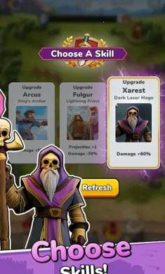 4. 招募多元魔法英雄,法师、圣骑士等每位英雄皆有专属魔法技能;通过魔法强化与稀有装备升级英雄,在随机生成的无尽冒险中存活更久。