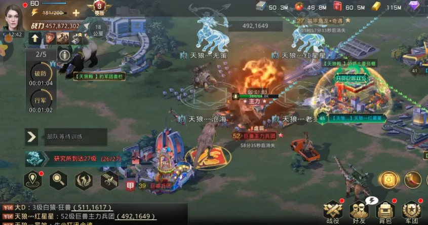 3. **多元特色玩法**:有海陆空三大战场、巨兽合金装甲、巨兽基因改造等创新玩法,还有千人军团同屏对抗大型战争,满足玩家多样策略需求。