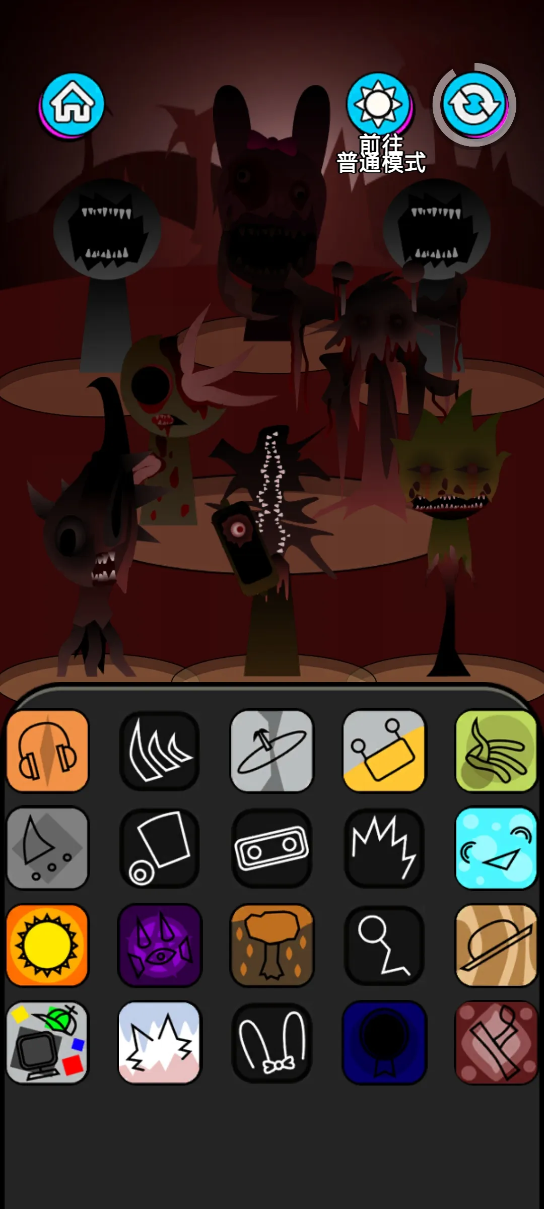 3. 游戏模式丰富。第二代有普通模式、恐怖模式及隐藏惊喜。完成挑战能解锁内容,增强了个性化体验,包括角色自定义等,还有稀有Sprunki之星可兑换奖励。