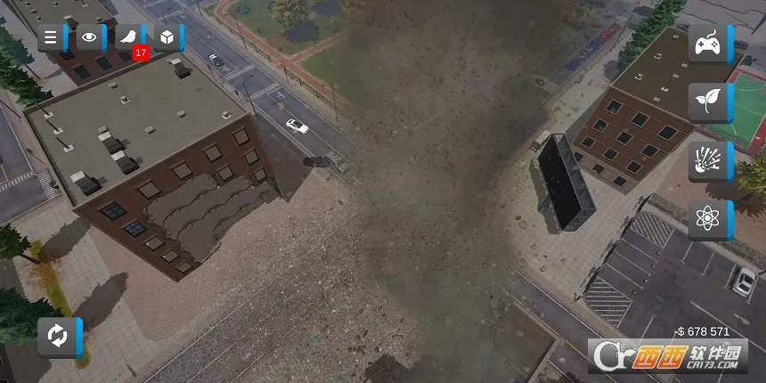 在“城市粉碎模拟器2MOD菜单下载”中,玩家可选择如地震、龙卷风、核武器、外星飞船等多种史诗级灾难来破坏城市。无论是建筑、汽车还是道路,都能随心所欲地粉碎破坏,尽情释放内心的负面情绪,感受前所未有的破坏快感。