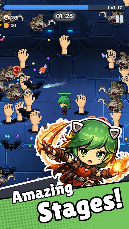 4. 游戏进程是渐进挑战,积累经验可解锁永久升级提升角色生存能力,鼓励玩家不断尝试挑战极限。而且移动和操作优化得很好,能让玩家在紧张环境中流畅操作,随时享受刺激生存挑战,体验无尽乐趣与成就感。