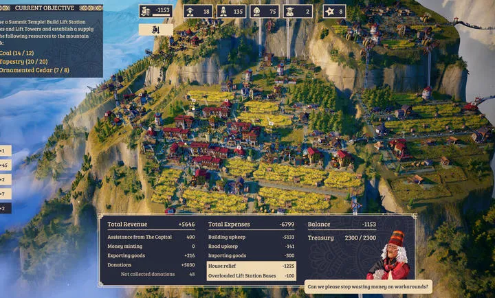 肋萨拉:顶峰王国是城市建设游戏,族人离开低地后,在高山建城。要应对独特环境挑战,发展农业、开采矿产、抵御雪崩、建立运输网络,最终建立顶峰圣殿,征服巅峰。