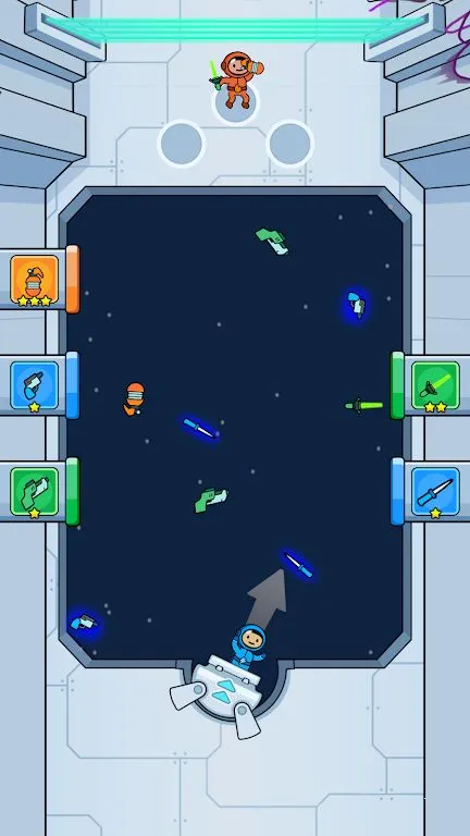 3、在零重力环境下作战,宇航员要拾取武器、巧妙控制飞行轨迹避开障碍物并收集奖励。