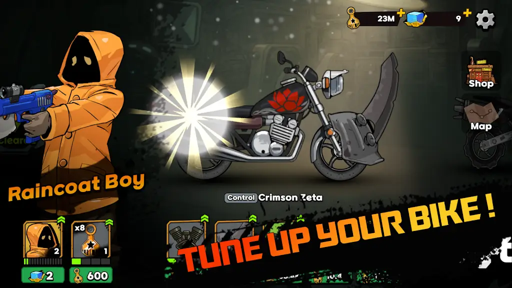 2. 多样化角色与独特装备,猎人各具特色,有专属属性、武器和个性,摩托车可全面升级和定制。