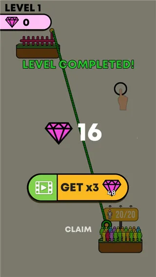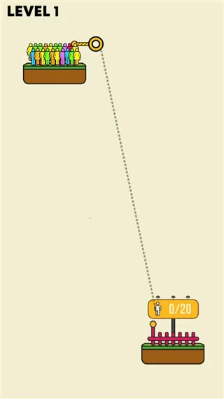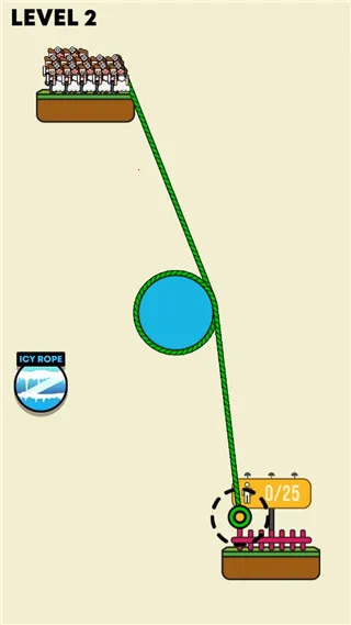 4、然后进入第二关便可开始游戏。同理,玩家需要搭建绳索,让这些人都到达安全区;