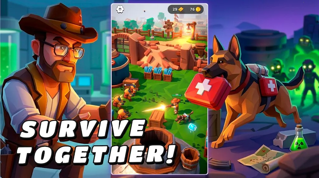 《最后防线 Z(废土生存游戏)》是一款融合世界探索、不间断射击与收集战利品的生存游戏。玩家要在废土杀丧尸、解锁区域、收集资源,还能设置自动采集,利用材料升级,高级会员可获宠物陪伴冒险。