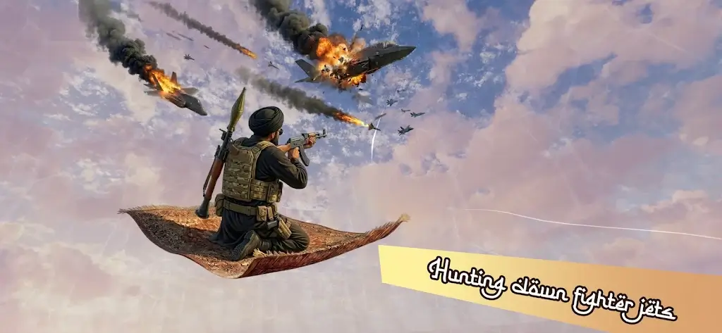 2、飞毯特攻(空中射击游戏)设有多种强力武器。AK步枪射速惊人,RPG发射器能造成范围伤害,不同武器切换和策略应对,赋予玩家更多操作自由度。