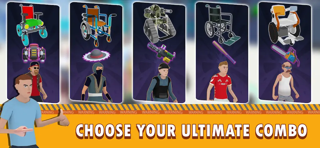 1、《轮躁大乱斗(轮椅动作游戏)》带来的战斗体验紧张刺激。玩家扮演坐在轮椅上的英雄,配备枪支、棒球棍、锯子等强力武器,在关卡中奋勇前进,面对敌人迅速切换武器和策略,突破重重障碍。