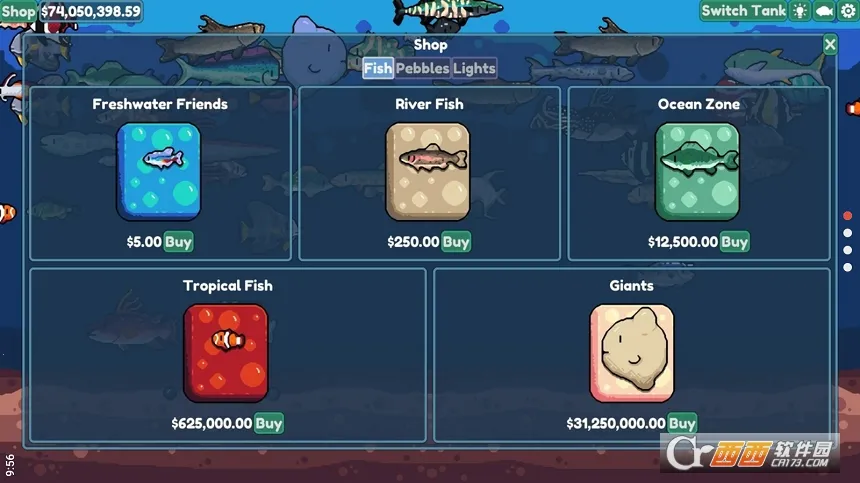 4、收集全部125种鱼类极具挑战性与趣味性,解锁不同颜色版本,不断丰富自己的鱼类收藏,沉浸在这独特的养鱼游戏中。