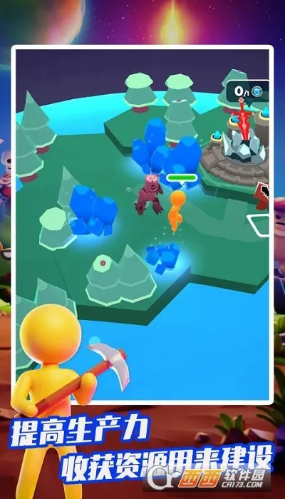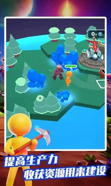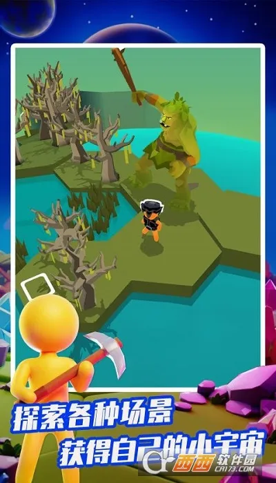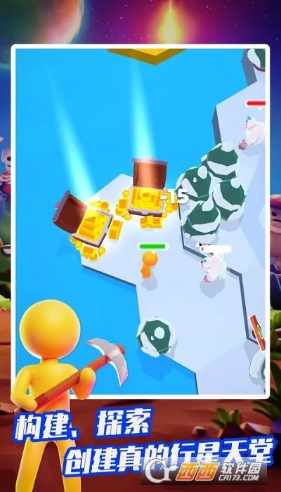 2、轻松有趣的建造玩法,玩家能自由砍树收集材料,在星球上建造新家园,解锁新区域,开拓领地,充满趣味性。
