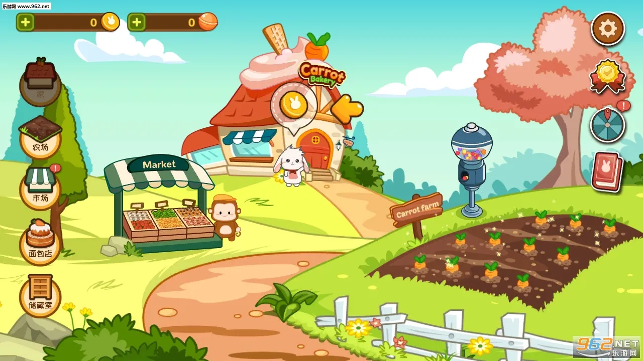 2、Lop Bakery2025最新版本玩法丰富多样,能种植各种胡萝卜,用其搭配食材制作面包出售,还能装饰面包店,完成任务解锁更多内容,可玩性极高。