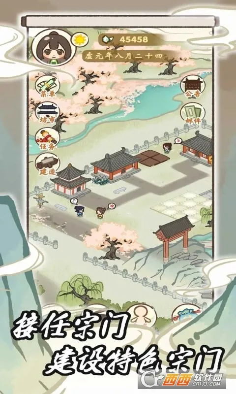 1、隐世宗门创建管理,体验休闲放松的门派经营玩法,打造专属古风修仙宗门。