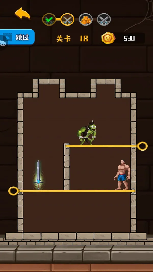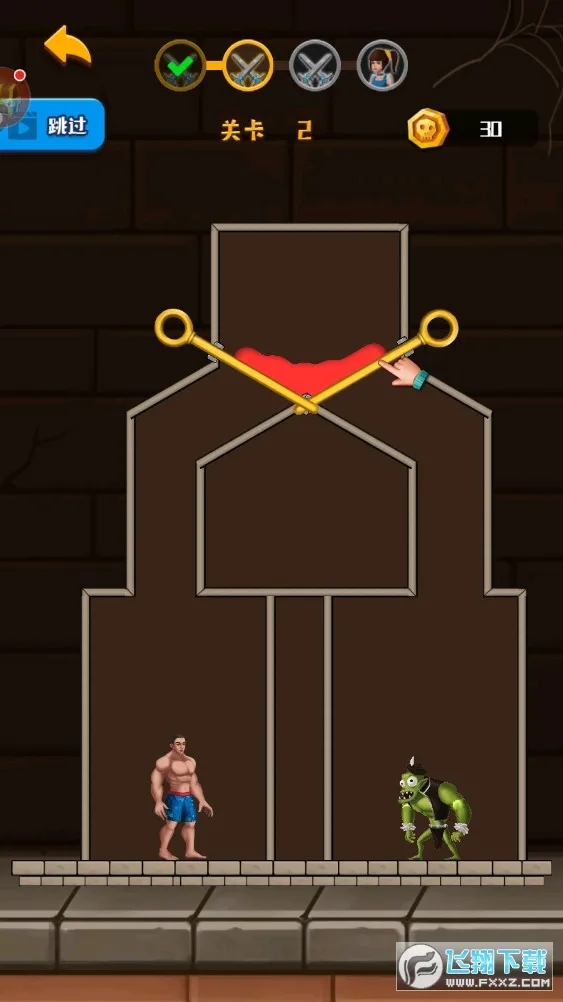 救救裤衩哥是一款拉针救援益智手游。玩家身处布满陷阱的密室,需移动横杆,利用水源、气体等道具帮裤衩哥智斗怪兽、救援伙伴,闯关可获金币,关卡丰富,玩法新奇。