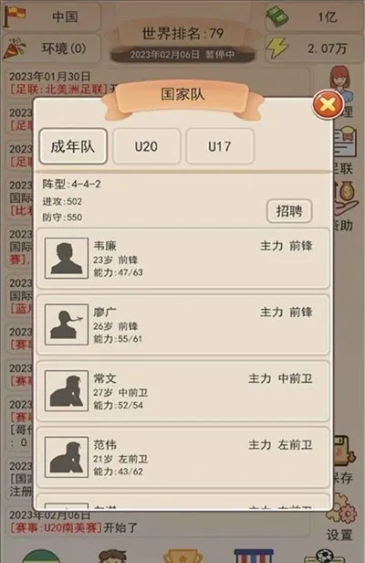 2、该游戏画面清新简约,以纯文字呈现,没有花哨特效,给玩家留下想象空间,能自由发挥聪明才智助力国家队进世界杯。