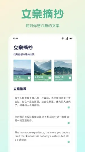 1、海量资源汇聚,涵盖各种类型书籍与多元文案,每日更新经典语句推荐,满足不同阅读口味。