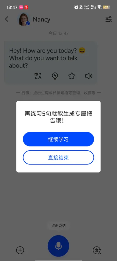 4、<瓜子口语(口语学习软件)>通过机器学习分析用户数据,自动调整课程难度和训练频次,推荐精准化学习方案。