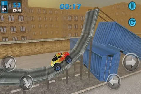 3、玩家操控大脚车在匪夷所思的道路上爬坡上坎,这样特别的驾驶场景,为游戏增添诸多挑战与乐趣。