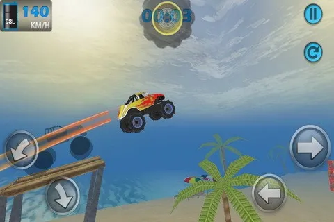3、玩家操控大脚车在匪夷所思的道路上行驶,爬坡上坎,过程充满挑战与乐趣。
