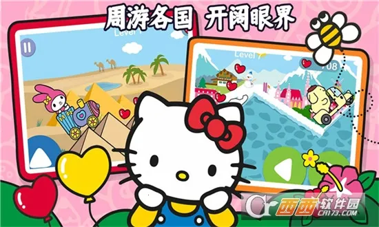 1、在凯蒂猫趣味世界(凯蒂猫游戏)里,能和凯蒂猫及其朋友们环游世界,欣赏未知风景,解锁有趣设施,度过快乐时光。
