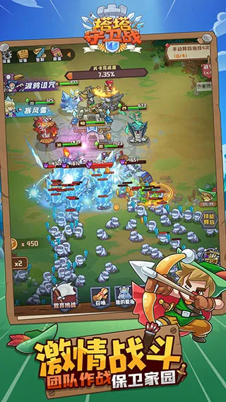 2. 丰富战斗流派:玩家可招募强力卡牌塔防,升级防御塔、装备圣物提升战力,属性点分配自由度高,结合英雄技能发展多种战斗流派。