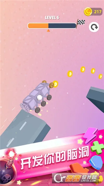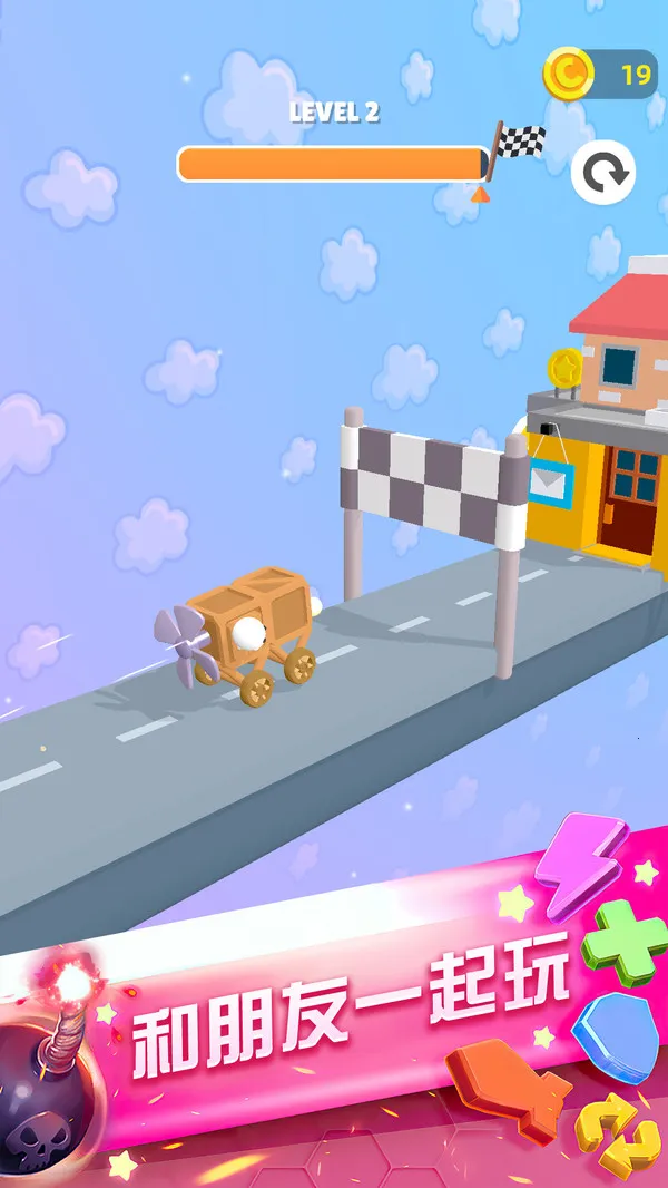 4、道具助力闯关:游戏中有各种道具,如加速器、金币、道路修复等,合理使用能轻松完成各种挑战。