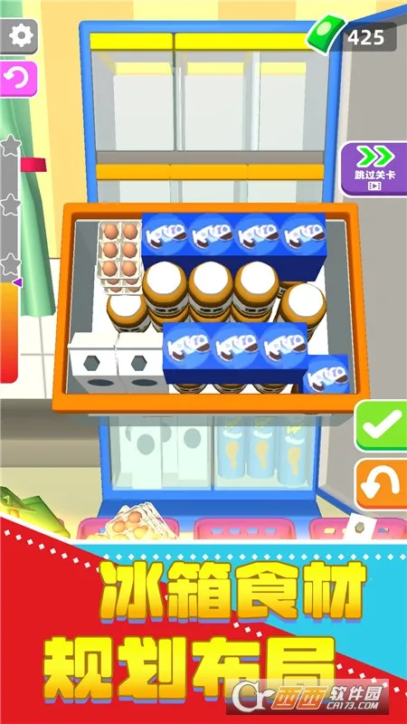 3、游戏玩法简单又有趣,玩家要将冰箱物品摆放整齐,根据食材种类合理布局,十分考验规划能力。
