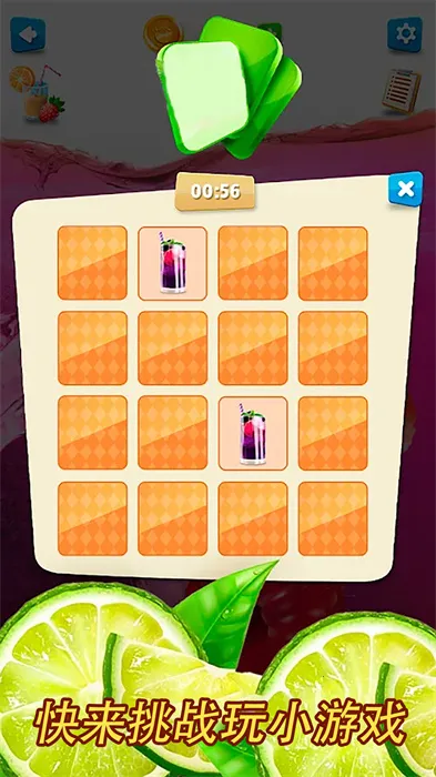 2、有迷你游戏,能选择鸡尾酒、波巴泡泡茶等,还可添加水果、木薯粉混合饮料。